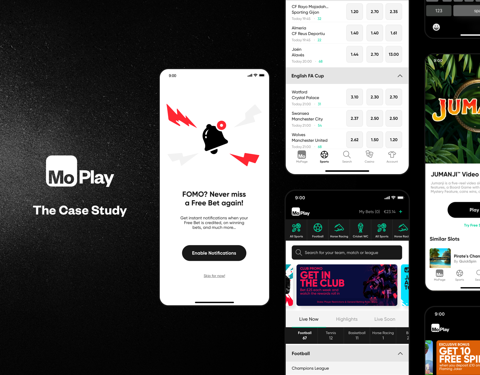 MoPlay was a dynamic startup created with an idea to deliver a mobile-first product that brings new level of entertainment to online betting and gaming.The product’s objectives were to provide our customers with a fast, simple and very personalised user experience.